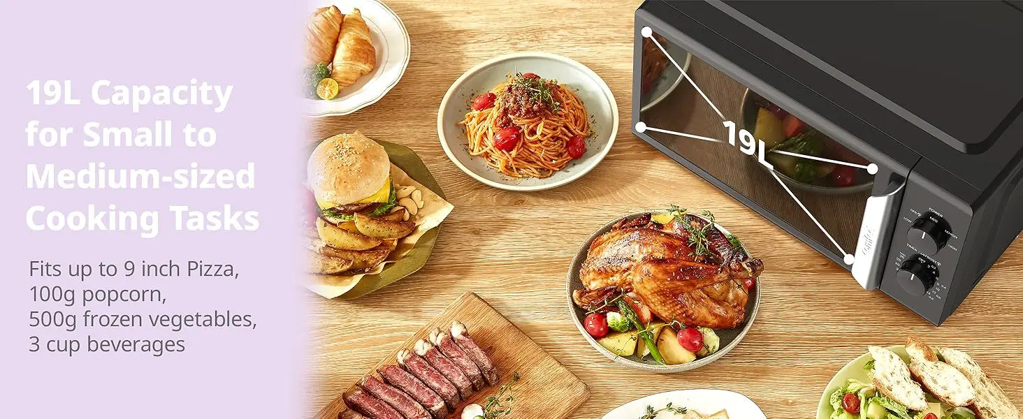 This 19L countertop microwave makes cooking and reheating food simple, quick, and convenient. The user-friendly mechanical control knobs let you set a timer from 1 to 30 minutes and choose from five cooking power levels. Its lightweight and compact design is perfect for anyone living in small spaces like dorms or apartments, effectively minimising excessive space usage and providing an ideal solution for quickly preparing delicious meals.