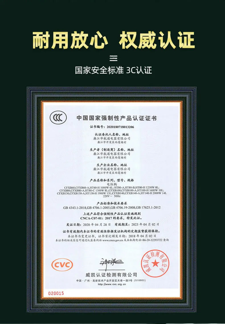 6L 8L 10L 13L 18L 23L 28L 36L 45L can be equipped with stainless steel steamer