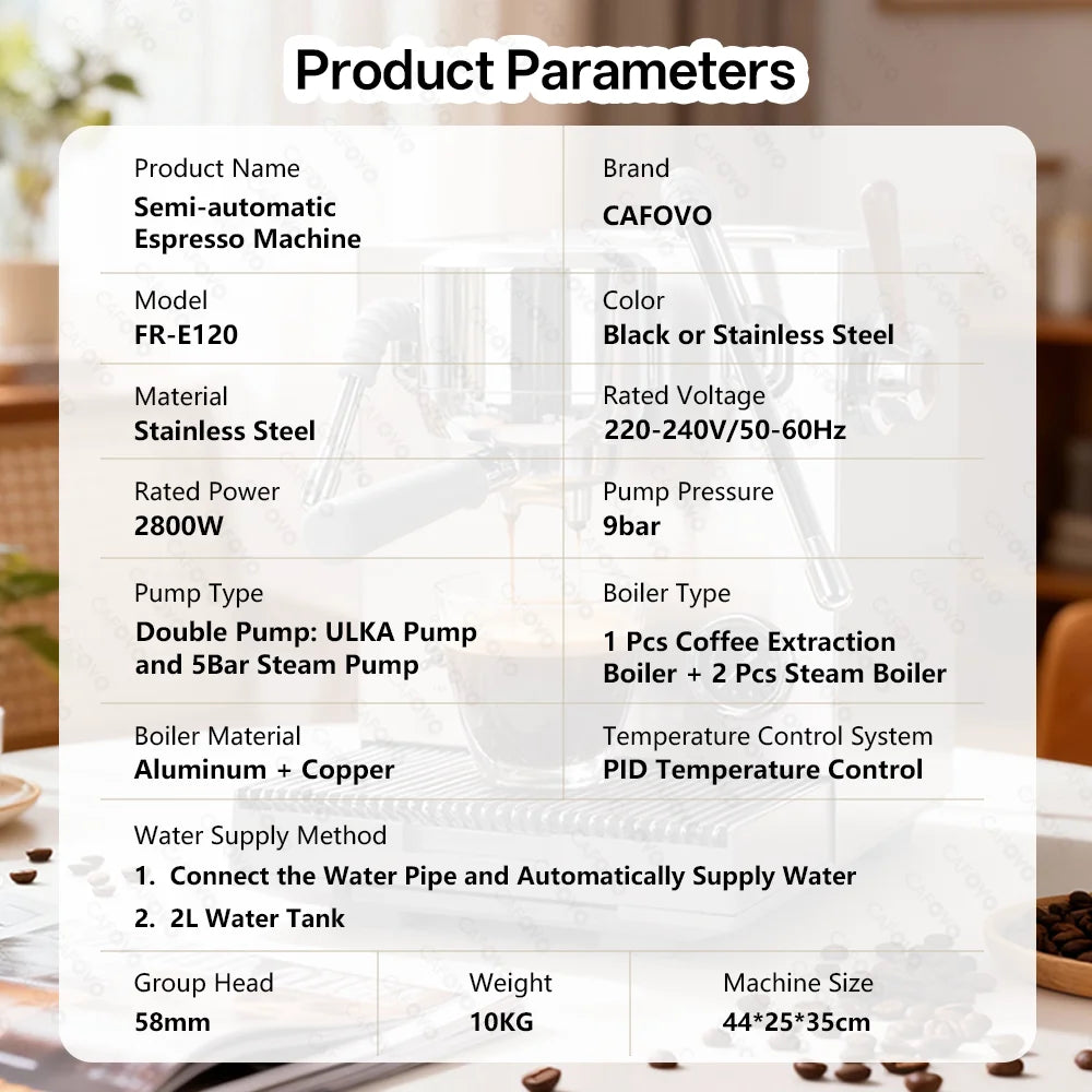 CAFOVO E120 9Bar Commercial Dual Boiler Espresso Machine ULKA Pump OPV System with OLED Display for Cafe Coffee Maker 220V