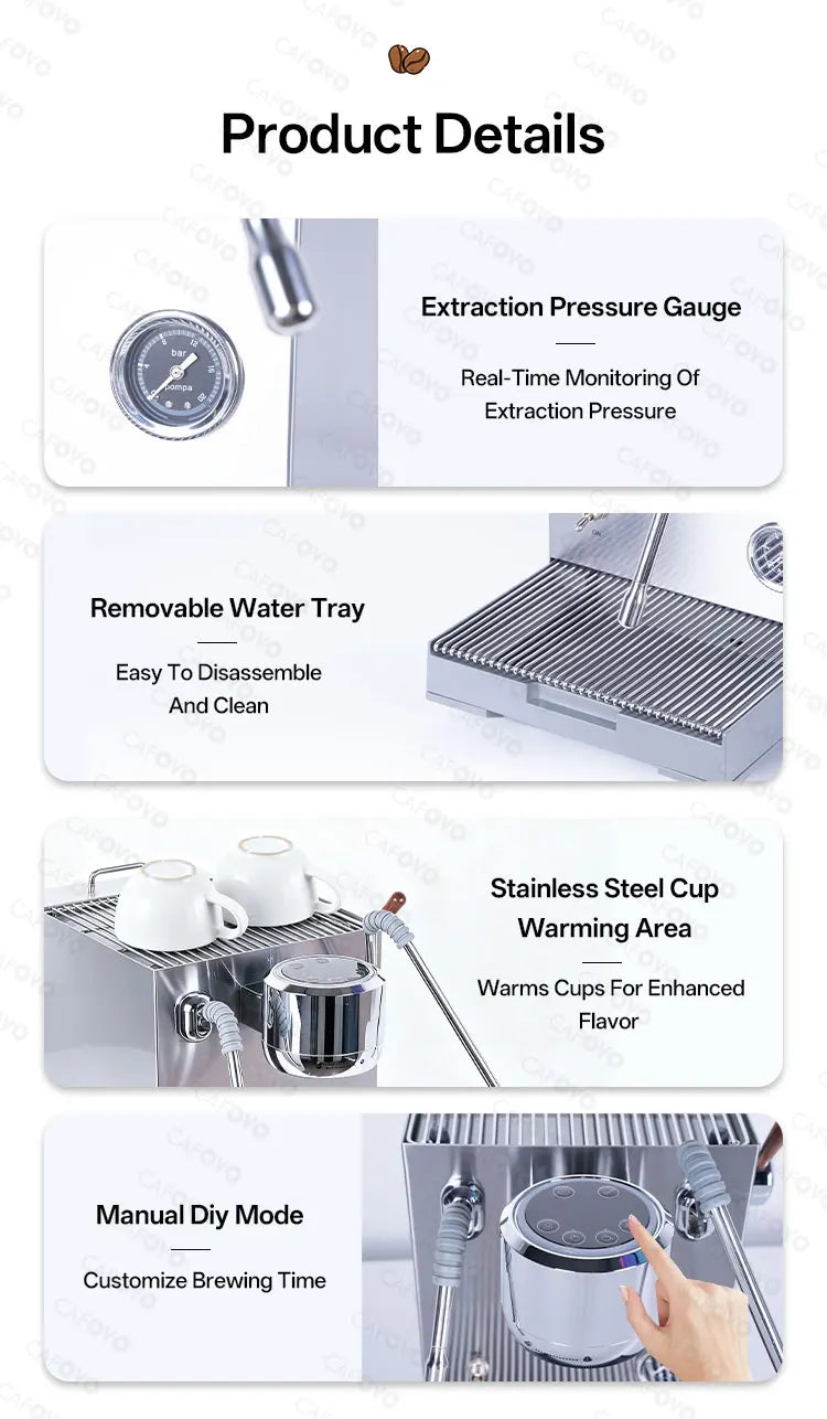 4. Commercial-grade 9bar extraction pressure ensures consistent coffee quality