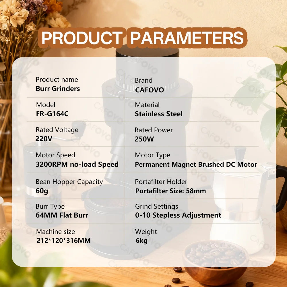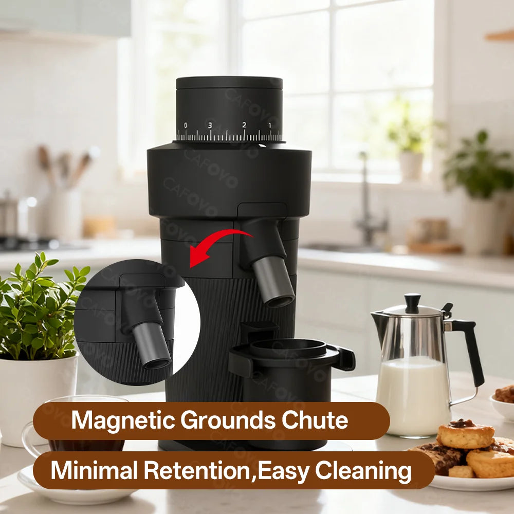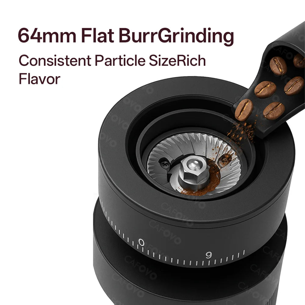 CAFOVO Q64 Espresso Grinder – 64mm Flat Burr, 3200RPM, Plasma Anti-Static, Single Dose