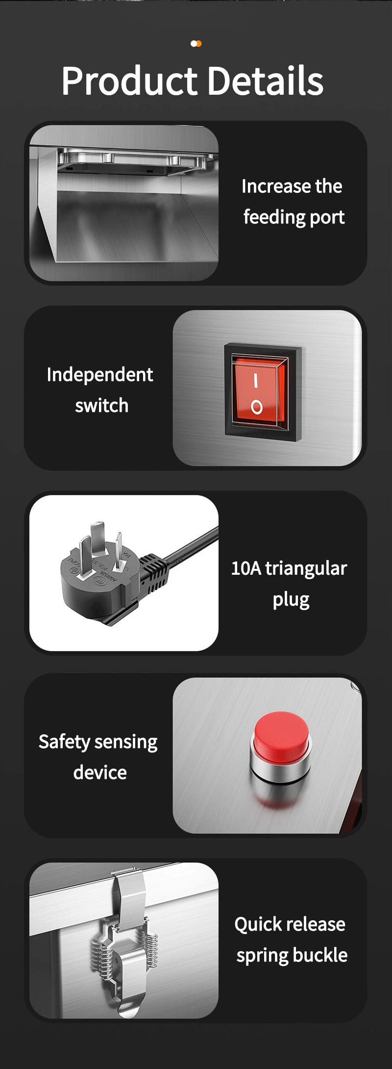 - **Feed inlet:** 10×7cm