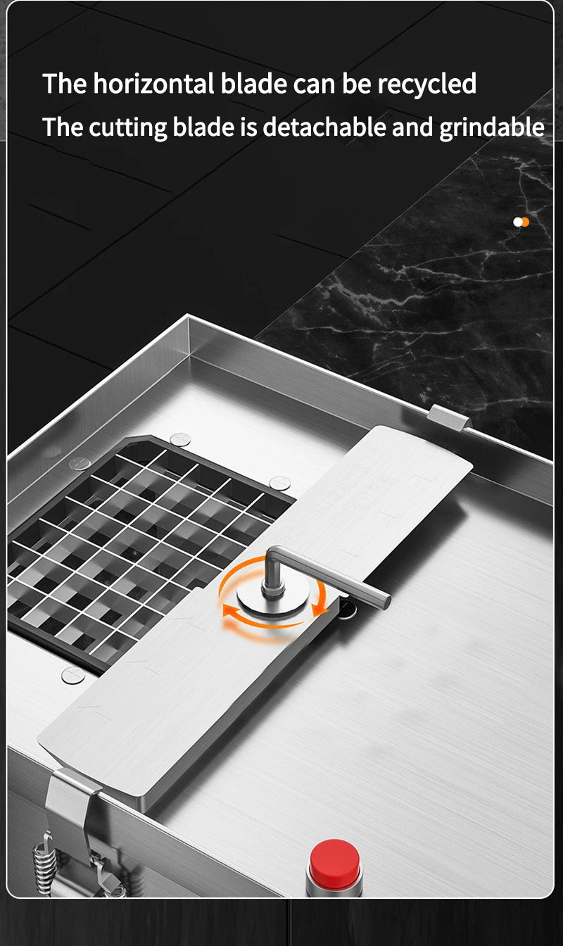 - **13mm stainless grid** – perfect uniform cubes for stir-fry, soups, meal-prep, crudités