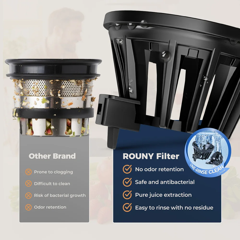 ROUNY Cold Press Juicer – Filter-Free, 150W, Wide Chute, Easy Clean, Black