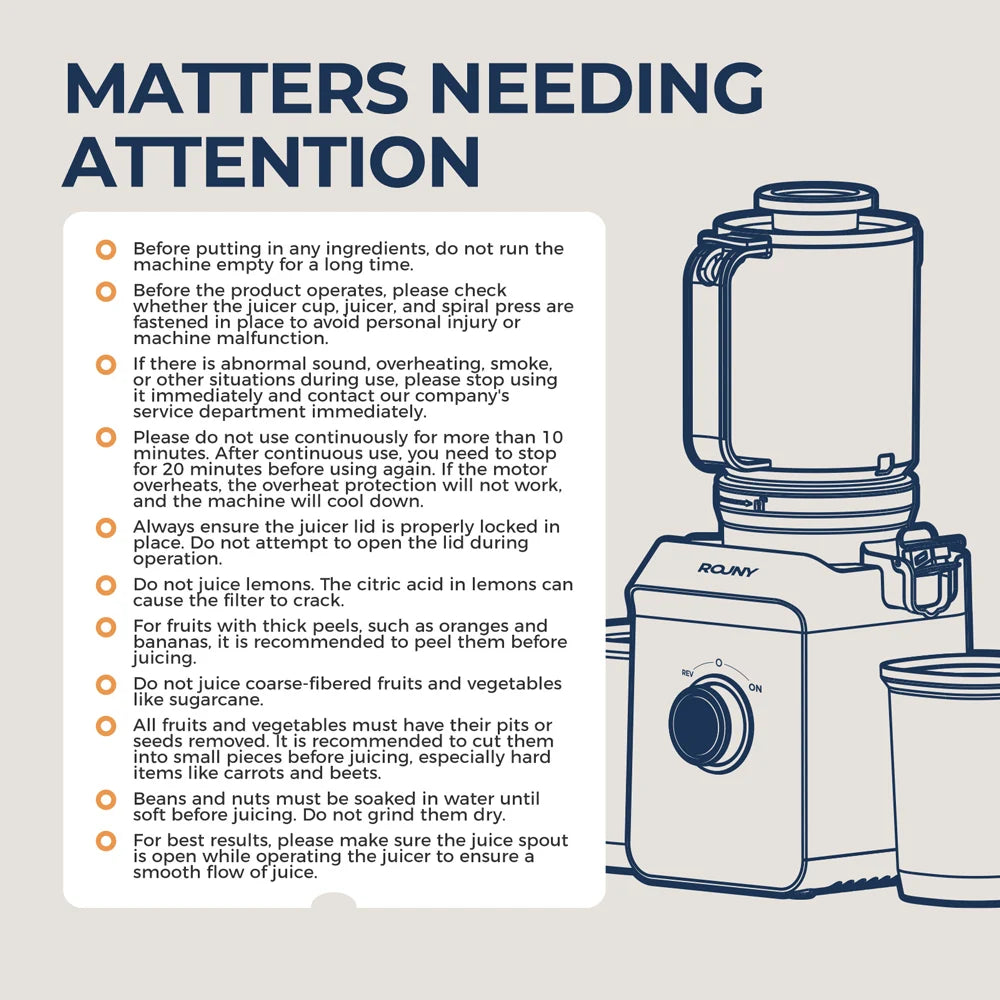 # ROUNY Cold Press Juicer – Filter-Free, 150W, Wide Chute, Easy Clean, Black