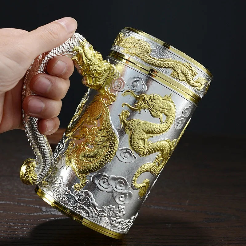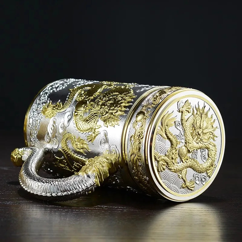 Tea pot insulated cup inner wall pure silver 99.9% 600ml insulated cup stainless steel handle office cup travel coffee cup