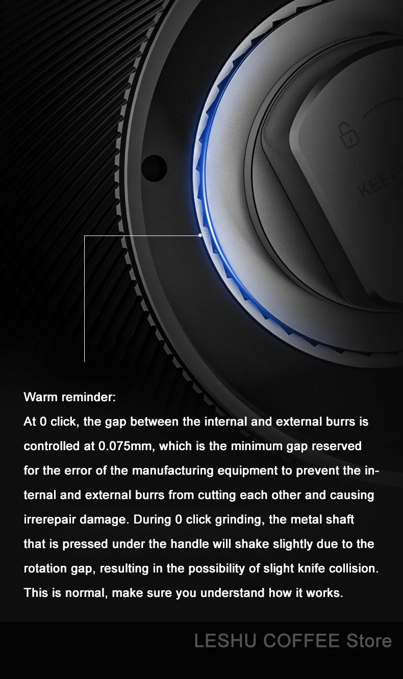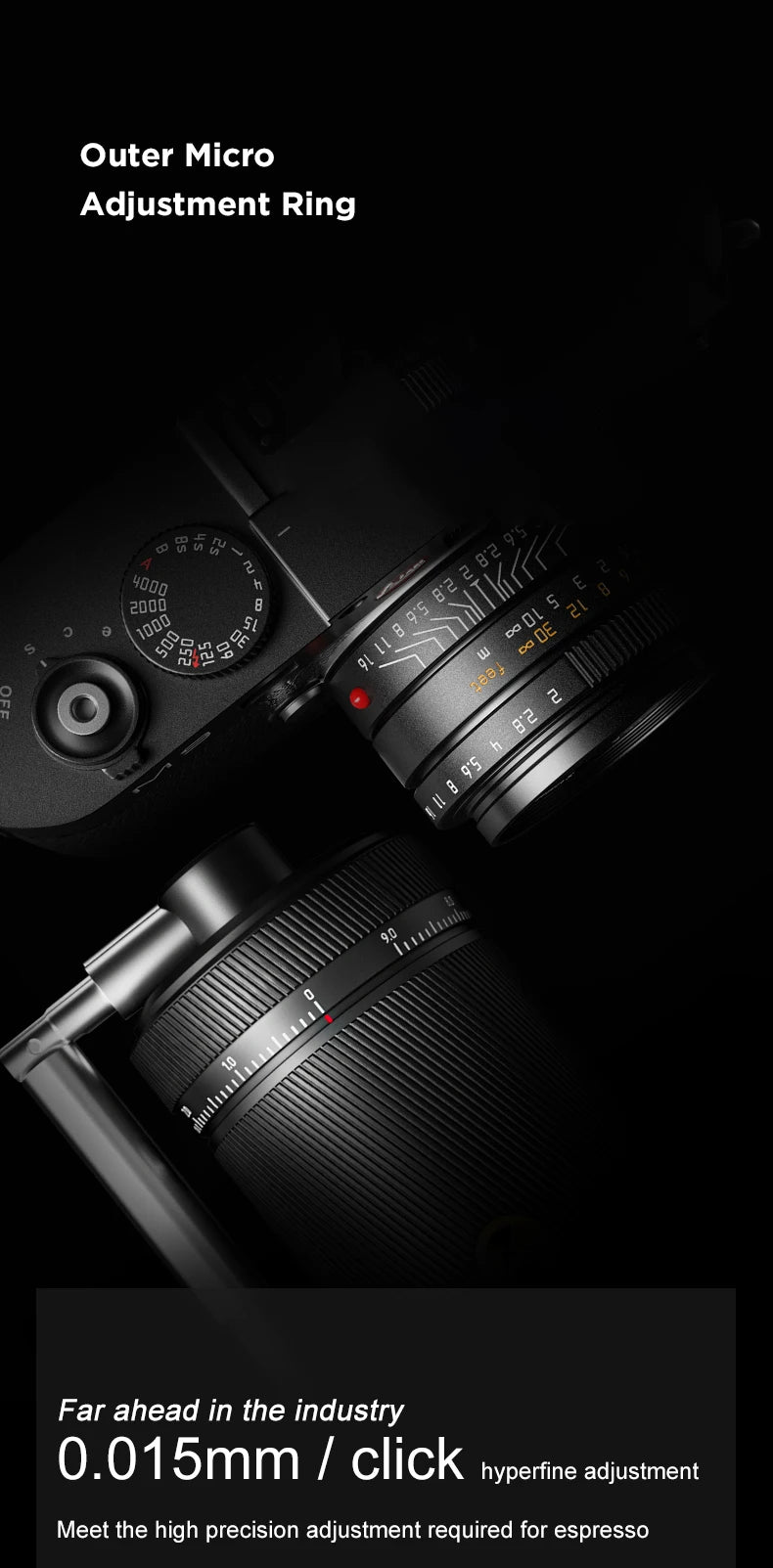 Stepless micro-dial – 60-click adjustment; tactile clicks never slip mid-grind