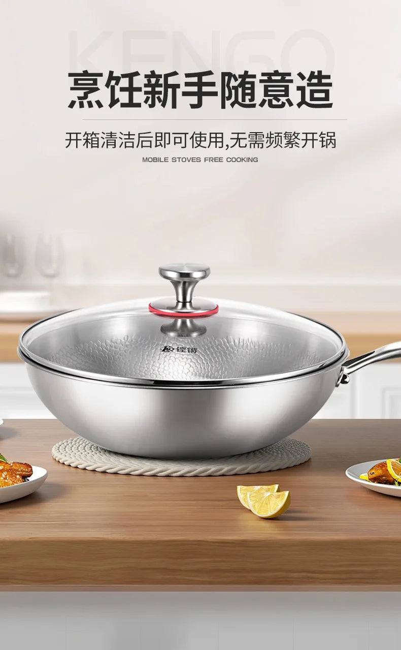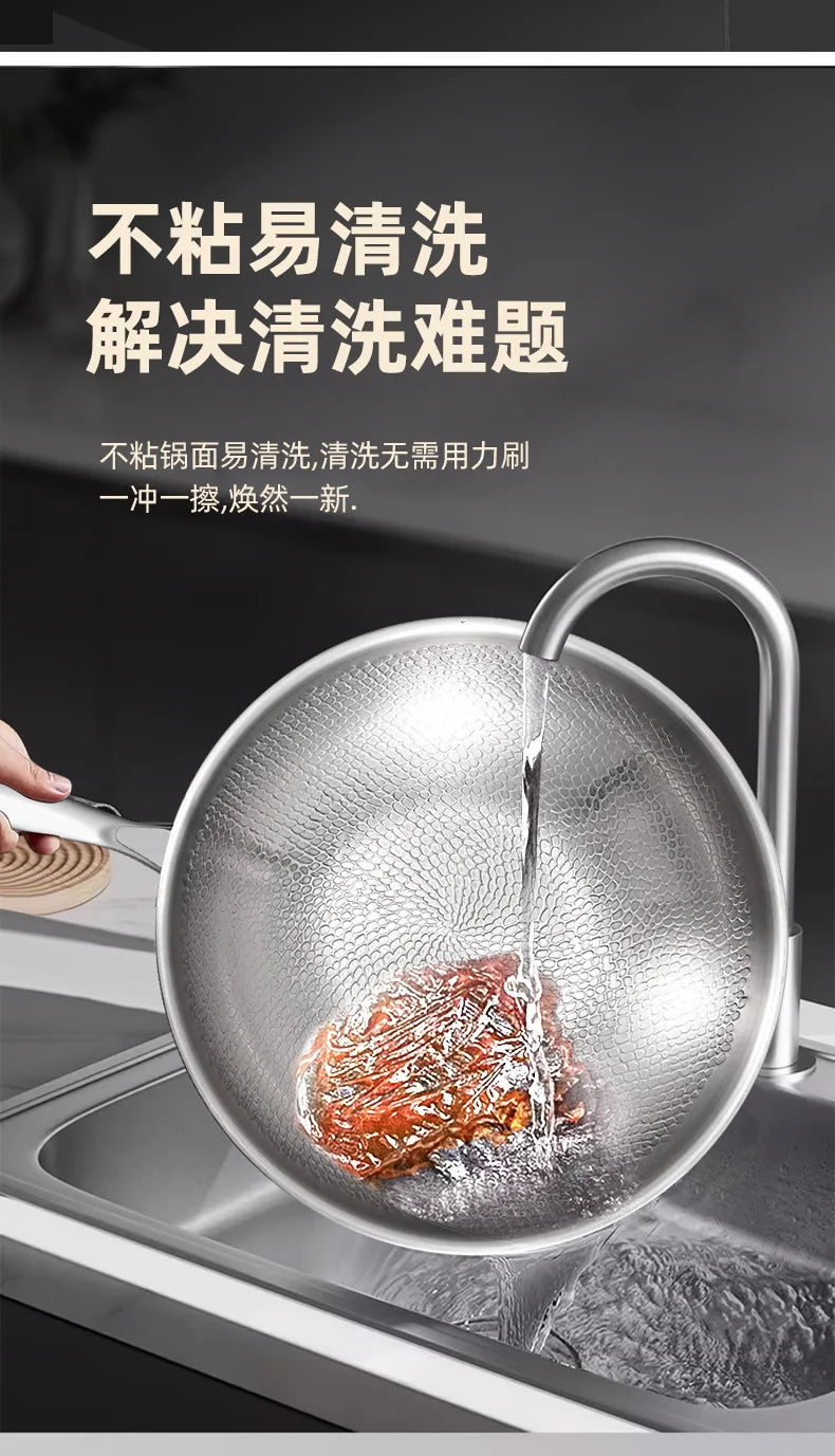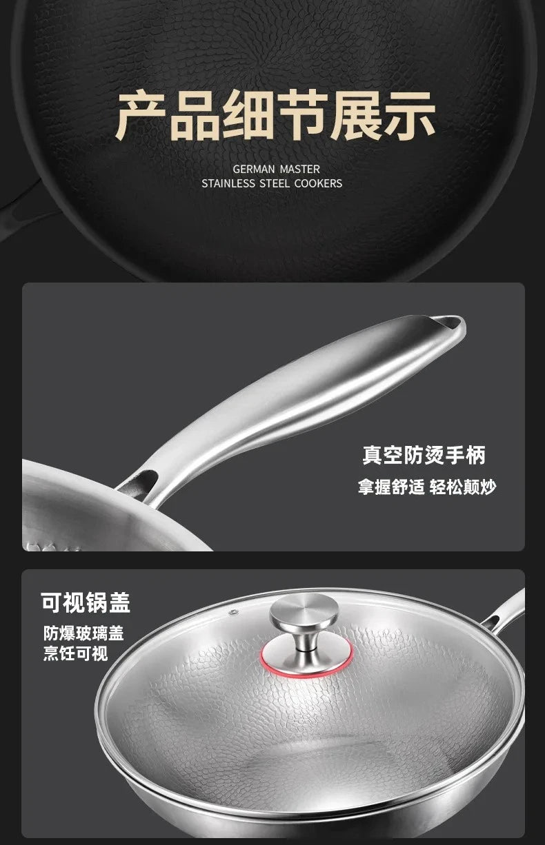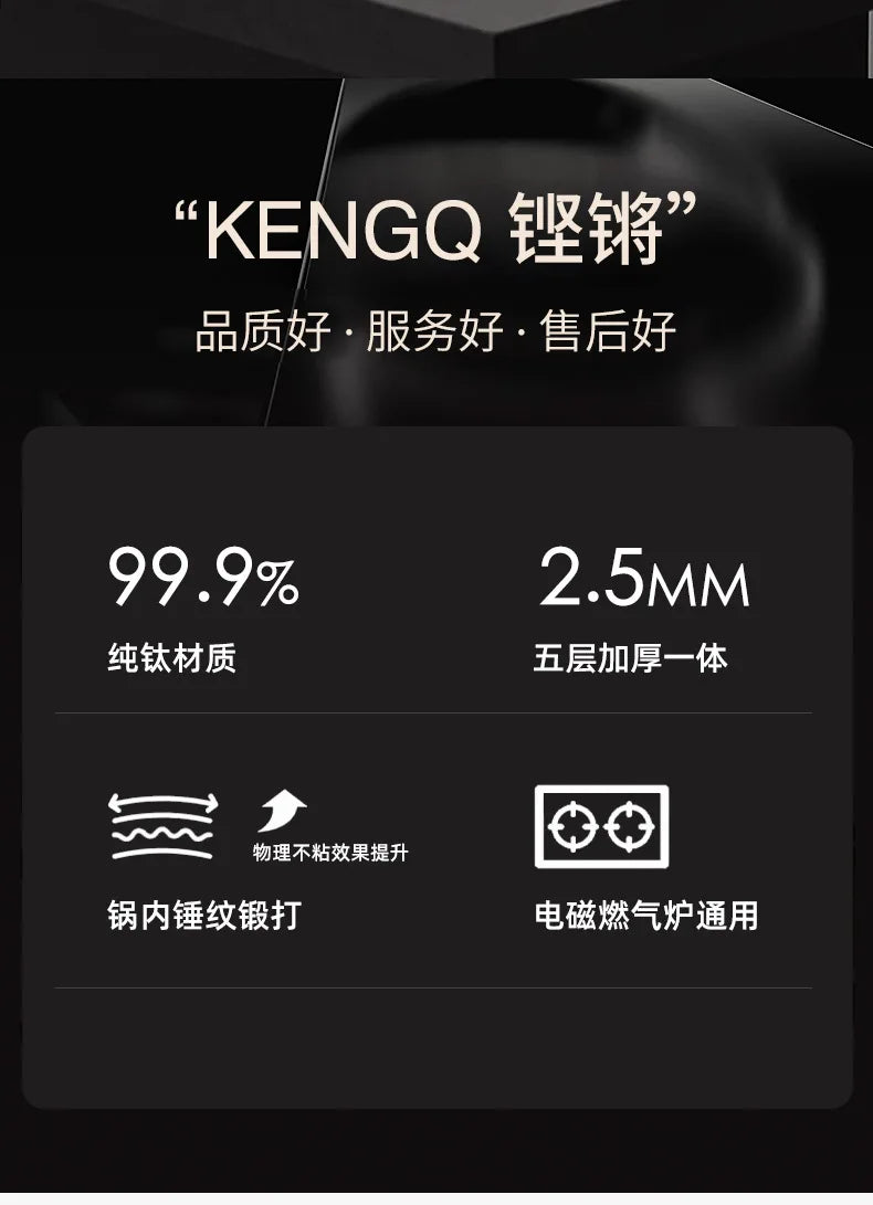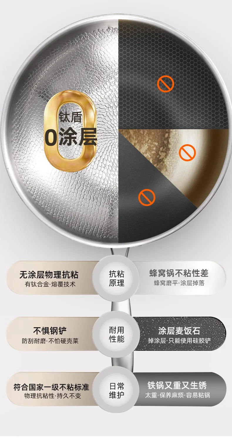 Titanium Wok Pure Titanium Uncoated Wok Household Flat Bottom Hammer Printing Physical Non-Stick Frying Pan
